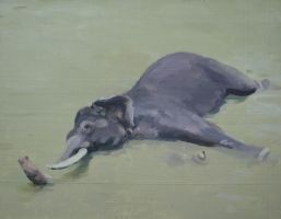 Elefant / 2006 / Öl auf Holz / 26 x 34 cm